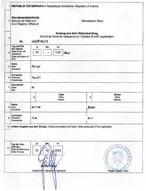 Certified translations of Austrian death, marriage and birth certificates