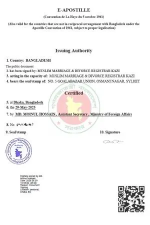 We authenticate Bangladeshi birth certificates, death certificates, marriage certificates (Nikah Nama) for legal use abroad with Bangladeshi Apostille Stamps and at major embassies in Dhaka.