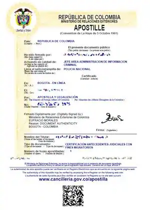 We apostille Colombian birth, marriage and death certificates for legal use abroad. If you need assistance obtaining a duplicate or replacement certificate for authentication or embassy attestation in Colombia, please Contact usCriminal Record Certificates